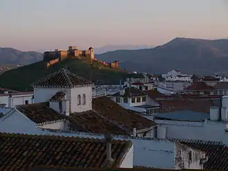 The area was first inhabited in prehistoric times, and was exploited for its commercial position by Tartessos and by the Phoenicians, who most likely built the castle. The Romans, after their conquest of Spain, restored the fortress and had here a municipium known as Iluritanum, as attested by an inscription dating to 79 BC.