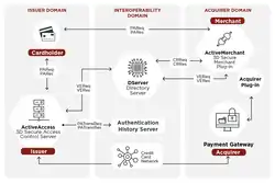 - Interoperability Domain (the infrastructure provided by the card scheme, credit, debit, prepaid or other types of a payment card, to support the 3-D Secure protocol). It includes the Internet, merchant plug-in, access control server, and other software providers.