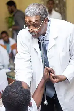 - ^ a b "قصة طبيب سوداني معروف فتح أبواب عيادته مجاناً للفقراء والمساكين (ساعدوني بالذهاب للمرضى في ولاياتهم بدل يتبهدلوا ويجونا هنا)". النيلين (in Arabic). 2018-02-22. Retrieved 2020-06-25.