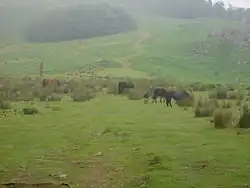 On its eastern slopes, patches of indigenous forest and vegetation abound, while on the western side (especially on the way down to Leitzaran) pine tree used for logging prevails. Grassland strips used for grazing sheep and horses interspersed with forest are common.