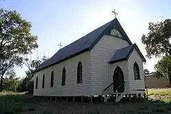 Prior to World War II Angledool had a bakery, several hotels, a post office, court house and a general store. The village now has an old cemetery, a church, a few houses and several buildings that are over 120 years old. The town hall made from locally made mud bricks is a classic example of early local architecture.[6]