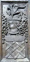By 1260 the estate was held by the Stapeldons; In that year Walter de Stapeldon was born, probably at Annery, and later served as Bishop of Exeter from 1307 to 1326 and as King Edward II's Lord High Treasurer.[5][10][16] The family originated at the estate of Stapledon in the parish of Cookbury, near Holsworthy, Devon.[17][18][19][nb 3] His monument and effigy exist in Exeter Cathedral. Directly across the north ambulatory and opposite the latter is the monument and effigy to Sir Richard Stapledon (died 1320), a judge and elder brother of the bishop, whose male issue continued for two or three generations[20] at Annery, then on the failure of male progeny, Annery passed via a daughter and sole heiress, Thomasin Stapledon, to her husband Sir Richard I Hankford.[21]