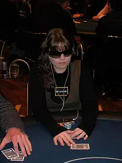 Annette Obrestad (born 18 September 1988) is a Norwegian YouTuber, poker player, and Scrabble player. She is the youngest person to ever win a World Series of Poker bracelet, which she accomplished at the 2007 World Series of Poker Europe (WSOPE).[1] She also runs a YouTube channel called Annette's Makeup Corner where she posts makeup tutorials and reviews, specializing in eyeshadow. She began playing in-person Scrabble tournaments in 2022 and has quickly risen to be one of the top 100 players in the North American lexicon.[2]