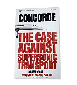 The Anti-Concorde Project was founded in 1966 by Richard Wiggs (a school teacher) to oppose the development of supersonic passenger transport. Wiggs positioned the Concorde as a test case in the confrontation between the environment and technology.[1]