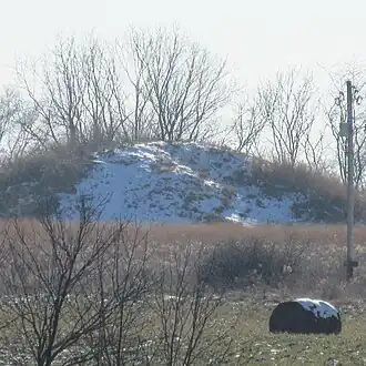 The Arledge Mounds are a pair of Native American mounds in the south central part of the U.S. state of Ohio. Located near Circleville in Pickaway County,[1] the two mounds lie in the middle of a farm field, far from any roads. These two mounds are disparate in size: while the smaller mound's height is 5 feet (1.5 m), the other's is 20 feet (6.1 m), and their diameters are approximately 65 feet (20 m) and 120 feet (37 m) respectively.[3]: 1140