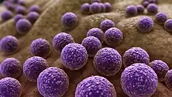 Despite efforts to preserve asepsis during surgery, there still persists a 1-3% chance of a surgical site infection (SSI).[19] Infections are categorized as superficial incisional, deep incisional, or organ; the first type are confined to the skin, the second to muscles and nearby tissues, and the third to organs not anatomically close to the operation site.[19][20] The exact modes of infection depend on the types of surgery, but the most common bacteria that are responsible for SSIs are Staphylococcus aureus, coagulase-negative staphylococci, Escherichia coli, and Enterococcus spp.[21] The CDC emphasizes the importance of both antiseptic and aseptic approaches in avoiding SSIs, especially since Staphylococcus aureus, among other bacteria, are able to evolve drug-resistant strains that can be difficult to treat.[22] In 2017, nearly 20,000 patients in the United States died from Staphylococcus aureus in comparison to the 16,350 from diagnosed HIV.[23][24]