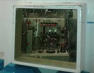 Automated synthesis or automatic synthesis is a set of techniques that use robotic equipment to perform chemical synthesis in an automated way.[1] Automating processes allows for higher efficiency and product quality although automation technology can be cost-prohibitive and there are concerns regarding overdependence and job displacement. Chemical processes were automated throughout the 19th and 20th centuries, with major developments happening in the previous thirty years, as technology advanced. Tasks that are performed may include: synthesis in variety of different conditions, sample preparation, purification, and extractions. Applications of automated synthesis are found on research and industrial scales in a wide variety of fields including polymers, personal care, and radiosynthesis.