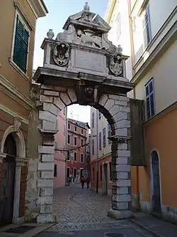 Balbi's Arch (Croatian: Balbijev luk), in Rovinj, Croatia, was built in 1678–79.[1] The arch leads to Grisia Street. On one side, there is the carved head of a Turk while on the other is the carved head of a Venetian. It stands on the site of the old town gate.[2]