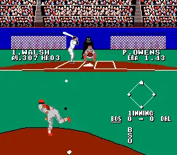The object of the game is to win an exhibition game of baseball, as the game does not have a season play option.[1] After an exhibition game is completed, the player is given a numerical score based thirteen categories, including batting, errors, and spectacular plays. The score ranges from 1 to 100, but a player can score over 100 points by earning bonus points for jumping and diving catches.