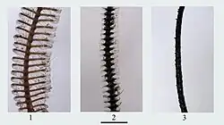 - "Its palpi are short and hairy. The thorax is stout and clothed with a thick pile. Its legs are hairy. The hind tibia are not dilated and have slight spurs. The forewings have rounded apexes and oblique outer margins. Vein 3 from near angle of cell. Veins 7 to 9 stalked from near the upper angle, and veins 10 and 11 stalked, where 10 often connected with veins 8 and 9. Hindwings with long cells and vein 3 from the angle."[1]