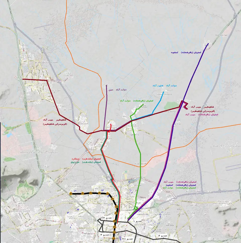 | Dastgerd - Isfahan | Dashgerd Terminal (Rajaei St) | Baboldasht Terminal | Isfahan Metro Line 1 BRT Line 2 | |
