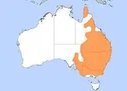Three subspecies have been described – subspecies picumnus is broadly distributed from the Grampians, Victoria, through central New South Wales to the Bunya Mountains, Queensland. The subspecies can be found in coastal catchments and drier areas on and west of the Great Divide, intergrading with subspecies victoriae, which is found on the Great Dividing Range from south-east Queensland to the Grampians, Victoria. Subspecies melanotus occurs from Cape York Peninsula south to near Cooktown, Queensland.[2] Known as the black treecreeper, it has distinctive sooty brown plumage and is slightly smaller than the southern subspecies.[4]