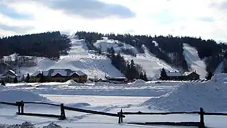 Calabogie Peaks is a ski resort in the municipality of Greater Madawaska, Renfrew County in Eastern Ontario, Canada. It is located 80 kilometres (50 mi) west of Ottawa, and was founded in 1969.[2] Although the resort is named after the nearby community of Calabogie and Calabogie Lake, the mountain is called Dicksons Mountain.[1] Calabogie Peaks Resort offers the highest vertical drop among public ski hills in Ontario, 238 metres (781 ft). In addition to the beginner hill, Calabogie offers the longest beginner trail in Ontario, as well as plenty of intermediate and expert runs.