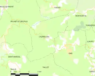 Calmeilles (French pronunciation: [kalmɛj] ⓘ; Occitan: Calmes; Catalan: Calmella) is a commune in the Pyrénées-Orientales department in southern France. Historically and culturally, the commune is in the Aspres region, a small Roussillon territory between the Têt valley in the North and the Tech valley in the South.