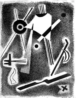 Upon returning to New York, Koppelman continued his study of Aesthetic Realism, and under the G.I. Bill, he studied at the Amédée Ozenfant School and became Ozenfant's assistant.[2] While he continued to exhibit sculpture and drawings,[21] he also began printmaking, a medium which, he said, combines the carving quality of sculpture with the subtleties of light and shade in drawing and painting.[22]
