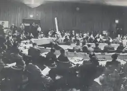 In the 1950s, the governing Liberal Party was led by President Syngman Rhee. In April 1952, opposition lawmakers and some Liberal Party lawmakers attempted a constitutional amendment but were branded enemies of the state by Syngman Rhee.[3] When the assembly voted to have martial law lifted in Busan, Rhee had half of them arrested. After a staged assassination attempt on Rhee, police began to investigate alleged links to the opposition. Police claimed that Chang Myon was working with assassins paid by North Korea to depose Rhee. Under this type of pressure, the assembly voted 160 to zero for Rhee's constitutional amendments.[3] By the late 1950s Chang Myon emerged as the major alternative to Rhee, and in 1960, when Rhee was overthrown by the April 19 Movement and a popular revolution, Chang Myon was elected the Prime Minister of the Second Republic of Korea and de facto chief executive.
