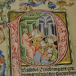 The establishment of a medieval university in Prague was inspired by Holy Roman Emperor Charles IV.[6] He requested his friend and ally, Pope Clement VI, to create the university. On 26 January 1347, the pope issued the bull establishing a university in Prague, modeled on the University of Paris, with all four faculties, including theology. On 7 April 1348 Charles, the king of Bohemia, gave to the established university privileges and immunities from the secular power in a Golden Bull[7] and on 14 January 1349 he repeated that as the King of the Romans. Most Czech sources since the 19th century—encyclopedias, general histories, materials of the university itself—prefer to give 1348 as the year of the founding of the university, rather than 1347 or 1349. That was caused by an anticlerical shift in the 19th century, shared by both Czechs and Germans.