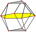 | The FCC arrangement can be oriented in two different planes, square or triangular. These can be seen in the cuboctahedron with 12 vertices representing the positions of 12 neighboring spheres around one central sphere. The HCP arrangement can be seen in the triangular orientation, but alternates two positions of spheres, in a triangular orthobicupola arrangement. | ||