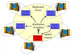 Collaborative virtual environments are used for collaboration and interaction of possibly many participants that may be spread over large distances. Typical examples are distributed simulations, 3D multiplayer games, collaborative engineering software, collaborative learning applications,[1] and others. The applications are usually based on the shared virtual environment. Because of the spreading of participants and the communication latency, some data consistency model have to be used to keep the data consistent.