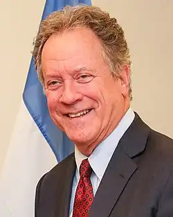 In his capacity as executive director of WFP, Beasley served at the level of Under-Secretary-General of the United Nations and was a member of the organization's Senior Management Group (SMG) under Guterres.[21] Since 2019, he has been a member of the World Economic Forum High-Level Group on Humanitarian Investing, co-chaired by Børge Brende, Kristalina Georgieva and Peter Maurer.[22]