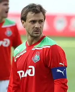 Dmitri Yevgenyevich Sychev[a] (Russian: Дми́трий Евге́ньевич Сычёв, romanized: Dmitriy Yevgen’yevich Sychyov, IPA: [ˈdmʲitrʲɪj jɪvˈɡʲenʲjɪvʲɪtɕ sɨˈtɕɵf] ⓘ; born 26 October 1983) is a Russian professional football official and a former player who played as a forward or as a midfielder. He is the president of Irtysh Omsk. He was hailed by the international press as "The Russian Michael Owen", because of his pace, and was dubbed "the most sensational young Russian forward since Vladimir Beschastnykh".[1] He was well known for his blinding pace and agility.