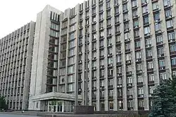 The Donetsk Regional State Administration Building (Ukrainian: Будівля Донецької обласної державної адміністрації) in Donetsk is the primary government headquarters (referred to as the Donetsk Regional State Administration; Ukrainian: Донецька обласна державна адміністрація) of Donetsk Oblast, a province located eastern Ukraine. It is located in the city's Voroshilov Raion, along the Pushkin Boulevard. It is currently controlled by the Donetsk People's Republic.