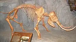 The species Stegodon trigonocephalus is known from the Early-Middle Pleistocene of Java.[34] A population from the Trinil H.K locality, which likely dates to the Middle Pleistocene,[35] is around 65% the size of mainland Stegodon species.[29] Large individuals are estimated to have reached around 280 cm (9.2 ft) at the shoulders, with a body mass of around 5 tons.[14] Other smaller unnamed Stegodon species are also known from the Early Pleistocene on the island.[34] The extinct dwarf elephant species Stegoloxodon indonesicus is also known from the Early Pleistocene of Java, which is probably closely related to S. celebensis from Sulawesi, but whose relationships to other elephants are obscure.[36][34]