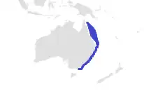 Pacific: eastern Australia. Found between Cairns, Queensland and Lakes Entrance, Victoria. 17°S - 38°S.