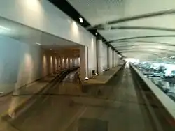 Plans were announced for the McNamara Terminal in 1996 by Wayne County and Northwest Airlines, who operated their largest hub in Detroit at the time.[1] The McNamara Terminal was designed to accommodate Northwest's hub operation, which was previously housed in the airport's Davey Terminal. As part of the design, a people mover on the upper level of Concourse A was planned to help transport passengers quickly thorough the 4,900-foot (0.93-mile) concourse. The people mover, which was eventually named ExpressTram, was the world's first airport people mover to operate on the inside of a terminal building, and not outdoors or in tunnels like other airports.[2]