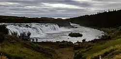 The Faxi (Icelandic pronunciation: [ˈfaksɪ] ⓘ, or Vatnsleysufoss [ˈvasːˌleiːsʏˌfɔsː]) waterfall is located on the Golden Circle, a popular tourist trail approximately 120 km east of Reykjavik. The waterfall is located on the Tungufljót river, a tributary of the river Hvita.[1]