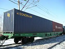 - Wagons with a loading length of at least 18.40 m (60 ft 4+3⁄8 in) (Type 2 conforming to UIC norm 571-4) can carry ISO containers with a total length of 60 feet (18.29 m); the majority can also be used for the transport of swap bodies. The Deutsche Bundesbahn expanded its fleet in 2007 by 615 wagons of Class Sgns (delivered by March 2009) with the option for a further 600 wagons (delivery by 2010).