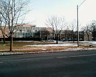 The Flint Public Library's Main Library is located on the western end of the Flint Cultural Center campus.[1] The building was designed by Sulho Alexander Nurmi, Louis C. Kingscott & Associates and built in 1958.[16] The library board partnered with OPN Architects to create a proposed $24-million renovation to the building, with the primary goals of maximizing the amount of the building's 94,000 square feet (8,700 m2) of space that is used publicly, keeping parts of the library open after regular hours, expanding the children's and teen areas, and creating a quiet zone.[17] During the summer months, the library hosts arts, blues, and storytelling festivals outdoors on its lawns.[1]