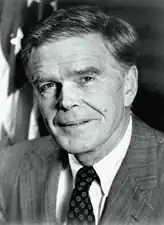 Haskell was sworn into the Senate on January 3, 1973.[3] He served as a member of the Senate Finance and Energy and Natural Resources Committees, where he earned a reputation as a tax reformer and an environmentalist.[2] He supported the historic Alaska Lands legislation and regulation of auto emissions, the Panama Canal treaties, and alternative sources of energy.[15] In 1978, lacking campaign funds and media acumen, he was defeated for re-election by Congressman William L. Armstrong, the first in Colorado to raise over a million dollars, losing by a landslide margin of 59%-40%.[16]
