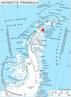 Foyn Point (65°15′S 61°38′W / 65.250°S 61.633°W) is a point surmounted by a peak 525 metres (1,720 ft) high, forming the southeast extremity of Blagoevgrad Peninsula and marking the north side of the entrance to Exasperation Inlet, on Oscar II Coast on the east side of Graham Land, Antarctica. Sir Hubert Wilkins on a flight of December 20, 1928 photographed what appeared to be an island off the east coast, later charting it in 66°30′S 62°30′W / 66.500°S 62.500°W (present Slav Point). Subsequent comparison of Wilkins' photographs of this feature with those taken by the Falkland Islands Dependencies Survey, who charted the coast in 1947, indicate that this point, although considerably north of the position reported by Wilkins, is the feature named by him as "Foyn Island". The name Foyn Point is given to the southeast extremity of this feature. It is named for Svend Foyn.[1]