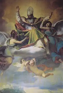 - Ceiling frescoes of angels and prophets; Julius II lays the first stone of the St. Peter's Basilica and Sixtus IV blesses armies fighting Turks, and Christ clears moneylenders from the temple (Presbytery); (1846–1849) for the Cathedral in Savona.