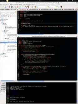 Geany (/dʒiːni/[4] JEE-NEE) is a free and open-source lightweight GUI text editor[5] using Scintilla and GTK, including basic IDE features. It is designed to have short load times, with limited dependency on separate packages or external libraries on Linux. It has been ported to a wide range of operating systems, such as BSD, Linux, macOS,[6] Solaris and Windows. The Windows port lacks an embedded terminal window; also missing from the Windows version are the external development tools present under Unix, unless installed separately by the user.[7] Among the supported programming languages and markup languages are C, C++, C#, Ada, Java, JavaScript, PHP, HTML, LaTeX, CSS, Python, Perl, Ruby, Pascal, Haskell, Erlang, Vala and many others.[8]