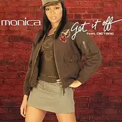 "Get It Off" is a song by American recording artist Monica. It was written by rapper Missy Elliott, Craig Brockman, and Herbert Jordan, and produced by the former along with DJ Scratchator and Brockman for Monica's fourth studio album, After the Storm (2003). The song is built around a sample of "Set It Off" (1984) by American electro and old school hip hop group Strafe. Due to the inclusion of the sample, Steve Standard is also credited as a songwriter. The uptempo also features guest vocals by rapper Dirtbag.