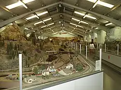 The 10,000 square foot exhibit includes O scale, HO scale and N scale models, replicating many California railroading locations.[3][4][5][6]