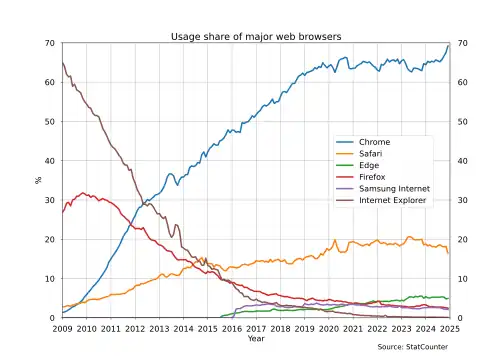 - ^ "Desktop Browser Market Share Worldwide". StatCounter Global Stats. Retrieved August 1, 2025.