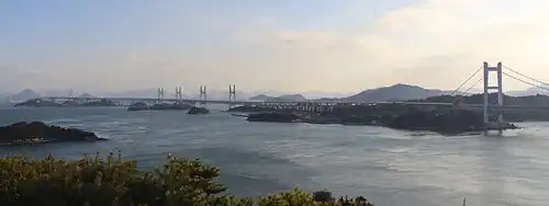 ![]() Great Seto Bridge from Honshū (left) via the islands of Hitsuishijima and Yoshima to Shikoku | |