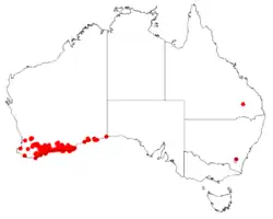 - ^ a b Young, J A. Hakeas of Western Australia: A Field and Identification Guide. J A Young. ISBN 0-9585778-2-X.