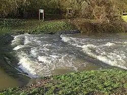 Old 2-step weir in flood -