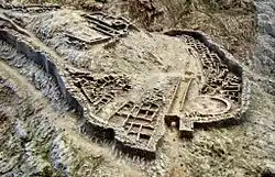 The Early Helladic II period came to an end at Lerna with the destruction of the "House of the Tiles", a corridor house.[13] The nature of the destruction of EHII sites was at first attributed to an invasion of Greeks and/or Indo-Europeans during the Early Helladic III or Tiryns culture period c.2200–2000 BC (or EHIII);[14] however, this is no longer maintained given the lack of uniformity in the destruction of EHII sites and the presence of EHII–EHIII/MH continuity in settlements such as Lithares, Phlius, Manika, etc.[15] Furthermore, the presence of "new/intrusive" cultural elements such as apsidal houses, terracotta anchors, shaft-hole hammer-axes, ritual tumuli, and intramural burials precede the EHIII period in Greece and are in actuality attributed to indigenous developments (i.e. terracotta anchors from Boeotia; ritual tumuli from Ayia Sophia in Neolithic Thessaly), as well as continuous contacts during the EHII–MH period between mainland Greece and various areas such as western Asia Minor, the Cyclades, Albania, and Dalmatia.[16] Changes in climate also appear to have contributed to the significant cultural transformations that occurred in Greece between the EHII period and the EHIII period (c. 2200 BCE).[17]