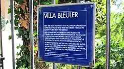 In 1887, Bleuler with his wife and son moved into a new house, the "Villa Bleuler", which was built for them. Today the building houses the Schweizerisches Institut für Kunstwissenschaft SIK-ISEA (Swiss Institute for Art Research),[4] a competence centre for art scholarship and art technology, founded in 1951. [2] The building, constructed by the architect Alfred Friedrich Bluntschli, has been since 1990 under Swiss federal protection as a historical landmark.