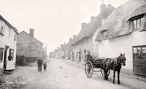 In the reign of Edward the Confessor, Leofrin gave High Roding manor to a monastery in the Isle of Ely. In the 19th century the parish was in the Dunmow Hundred, and in the Dunmow Union—poor relief provision set up under the Poor Law Amendment Act 1834—and part of the Rural Deanery of Roding. The parish Church of All Saints was restored in 1855 at a cost of nearly £1,000. It is a Grade II* listed building.[9] The church register dates to 1538. The 1882 parish living of a rectory, residence and 24 acres (0.10 km2) of glebe, land used to support a parish priest, was in the gift of John Strange Jocelyn, 5th Earl of Roden who was also the Lord of the Manor and the principal landowner until 1897. By 1902 the living was in the gift of William Henry Jocelyn, 6th Earl of Roden, with the Countess of Roden as Lady of the Manor and principal landowner. In 1914 the living was in the gift of the Countess of Roden, who was still the Lady of the Manor but not a principal landowner. There was a Parochial school for boys and girls, built for 86 children in 1861, with an average attendance of 64. By 1914 the school was under the control of the Essex Education (Dunmow District) Sub-Committees.[10]
