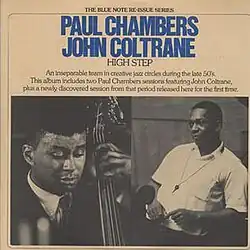 High Step is a jazz double album credited to bassist Paul Chambers and saxophonist John Coltrane, issued in 1975 on Blue Note Records, catalogue BN-LA451. It is a compilation taken from the 1956 Chambers' Music on the Jazz West label and Whims of Chambers, along with two unissued recordings from a session in Boston, Massachusetts, "Trane's Strain" from that session previously appearing on an anthology. Originally, all of these sessions were led by Chambers, but like Prestige Records before them, as Coltrane's fame grew long after he had stopped recording for the label, Blue Note used varied recordings where Coltrane had been merely a sideman, and reissued them with Coltrane's name more prominently displayed.