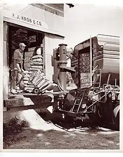 Depressed commodity prices following the stock market crash of 1929 caused Frank Krob to temporarily lose the elevator, but after a brief period he regained ownership.[11] As the economy recovered from the Great Depression, a 1938 epidemic of Equine Encephalitis swept the area, killing much of the local horse population. This event led the farmer customers of the Ely Elevator to adapt to utilizing tractors and trucks to deliver their grain to the elevator.