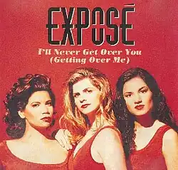 "I'll Never Get Over You Getting Over Me" is a song written by Diane Warren and recorded by female contemporary R&B group Exposé. It is featured on Exposé's 1992 eponymous album. It was the second single taken from the group's third studio album and was released in early 1993. The lead vocalist was Jeanette Jurado. Although the printing on the original album refers to the song as "I'll Never Get Over You Getting Over Me," many sources (including the cassette and CD singles that were released) place the last three words of the title in parentheses.