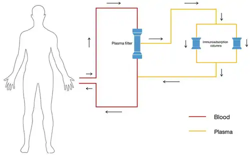 Immunoadsorption may be used as an alternative to plasma exchange in certain conditions.[6] Evidence of benefit is lacking in those with kidney problems. Concerns include that it is expensive.[7]