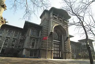 Istanbul High School is located in Cağaloğlu, Istanbul.[2] The school has changed several buildings throughout its history. Since 1933 the school has used its current building. The building was designed by architects Alexander Vallaury and Raimondo D'Aronco and inaugurated in 1882 as the Düyun-u Umumiye (Council of Ottoman Revenues and Debts Administration) building, which overlooks the entrance to the Bosphorus and the Golden Horn. A new building adjacent to the main historical building was inaugurated in 1984, providing new boarding and sports facilities. The primary languages of instruction are Turkish and German. The secondary foreign language of instruction is English.